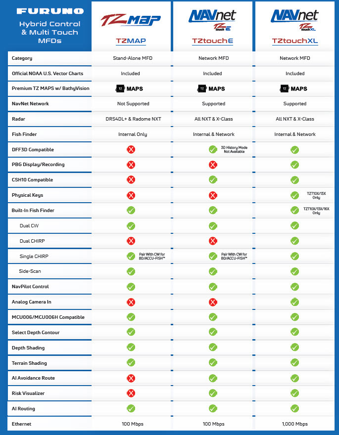The TZMAP9 and TZMAP13 all-in-one Chart Plotters are designed for boaters who demand reliable navigation, precision fish finding, and industry-leading charts in a simplified, easy-to-use package. These capable stand-alone MFDs put TZ MAPS, the most powerful charting available, right at your fingertips.