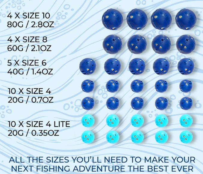 Klik Sinkers COME IN FIVE SIZES and can be used on the Boat, off the Beach, for Rock Fishing, estuary fishing and are great for the Kayak or Jet Ski. They can be used to DYNAMICALLY CONTROL THE DEPTH of your dead bait, live baits, trolling lures - even take your soft plastics deeper - not deep enough, just clip on another Klik Sinker and explore the next level down. You never know where a fish will strike or why so adjusting depth at will will certainly IMPROVE YOUR STRIKE RATE!