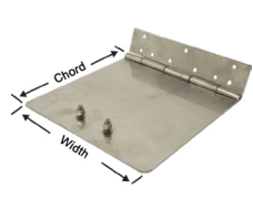 The Lectrotab stainless steel trim tab design provides unmatched strength and reliability. All stainless steel tabs are fabricated with a continuous rolled and pinned hinge. This design eliminates the need for welding. The tabs are made of corrosion resistant 12 gauge, 304 stainless steel. The first number in the size is the chord length of the tab (hinge to trailing edge), the second number is the width.