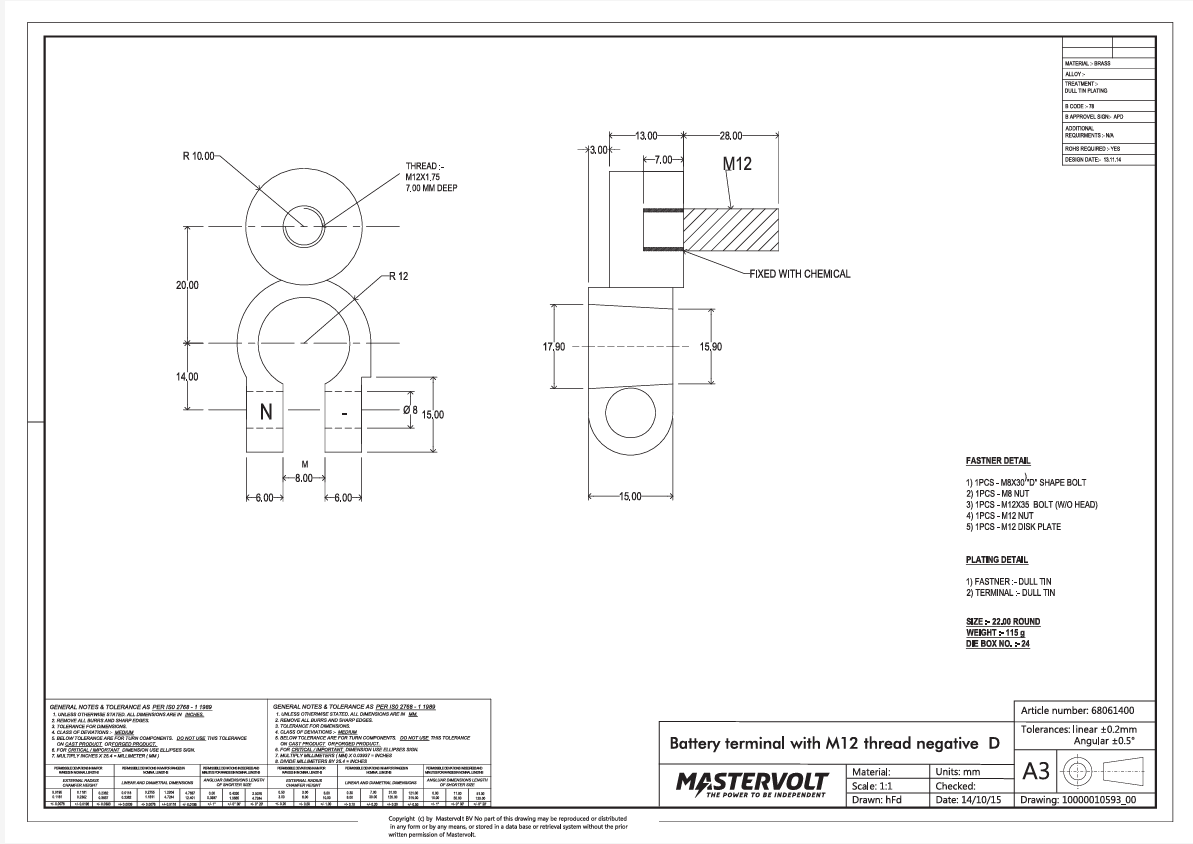 Your battery set is not complete without a proper and safe connection with the electrical system. Mastervolt recommends connections with corrosion-proof links and heavy-duty screw bolts. A proper cover and isolation of the battery poles prevents sparks or short circuiting.